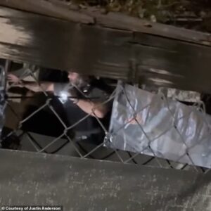 Fqinji Justin Anderson, 24 vjeç, dëgjoi britmat dhe vendosi të filmonte gjithçka, duke e kuptuar shpejt se bëhej fjalë për një situatë të rëndë, transmeton A2. Pasi pa të renë të mbyllur në kafazin e mbyllur me kabllo metalike, ai thirri policinë, ndërsa vazhdoi ta qetësonte viktimën nga ana tjetër e gardhit.