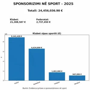 Raporti vjetor i sponsorizimeve i publikuar nga Ministria e Kulturës, Rinisë dhe Sportit (MKRS) tregon rritje të ndjeshme të investimeve në sportin kosovar, me klube dhe federata që përfitojnë miliona euro nga bizneset kryesore vendore.