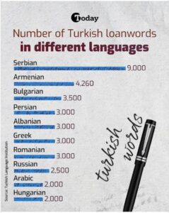 Sipas të njëjtit institut, Serbia, Armenia dhe Bullgaria janë vendet që kanë më shumë fjalë të huazuara turke në gjuhët e tyre, duke treguar për ndikimin e gjerë të kulturës osmane në Ballkan.