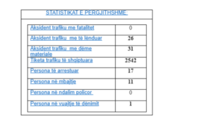 Po ashtu, shton PK’ja, kanë ndodhur 57 aksidente trafiku, ku 31 kanë qenë me dëme materiale, e 26 me të lënduar.