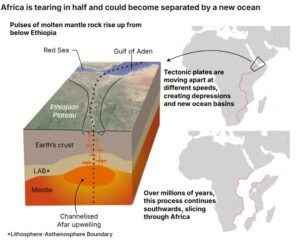 Këto dy masa tokësore dikur ishin të lidhura si pjesë të një puzzle-je, por një proces gradual i shkëputjes i ka tërhequr larg njëra-tjetrës. Ndarja po përhapet nga verilindja në jug të Afrikës, duke u shoqëruar me aktivitet vullkanik dhe sizmik.
