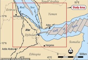 Studimi u përqendrua në zonën e Afarit, ku Deti i Kuq takon Gjirin e Adenit. Kjo është një prej pak zonave në Tokë ku takohen tre rripa tektonikë: Rripi Kryesor Etiopian, Rripi i Detit të Kuq dhe Rripi i Gjirit të Adenit – e njohur si nyja treshe.