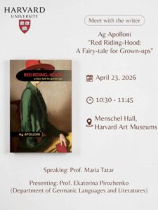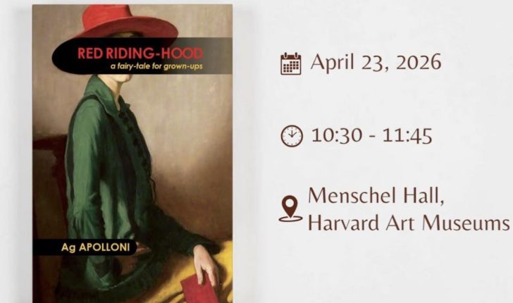 Në kuadër të Ditës Botërore të Librit, në Universitetin e Harvardit është organizuar një takim letrar me shkrimtarin shqiptar Ag Apolloni, ku prezantohet romani i tij “Kësukëkuqja, përrallë për të rritur” (Red Riding-Hood: A Fairy-tale for Grown-ups).