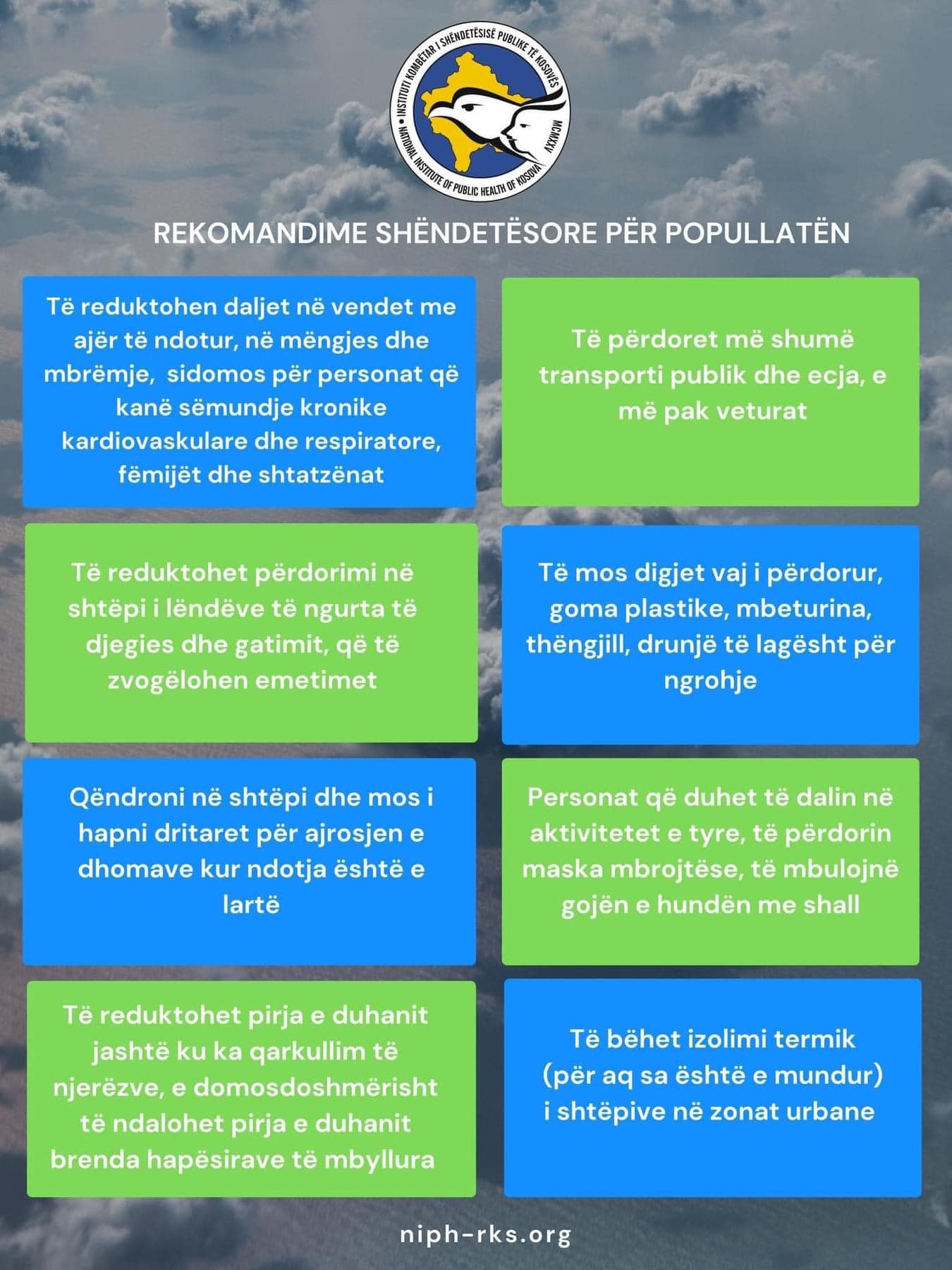 Në njoftimin e IKShPK-së, janë dhënë edhe disa rekomandime si të veprohet në situata kur ajri është i pashëndetshëm.