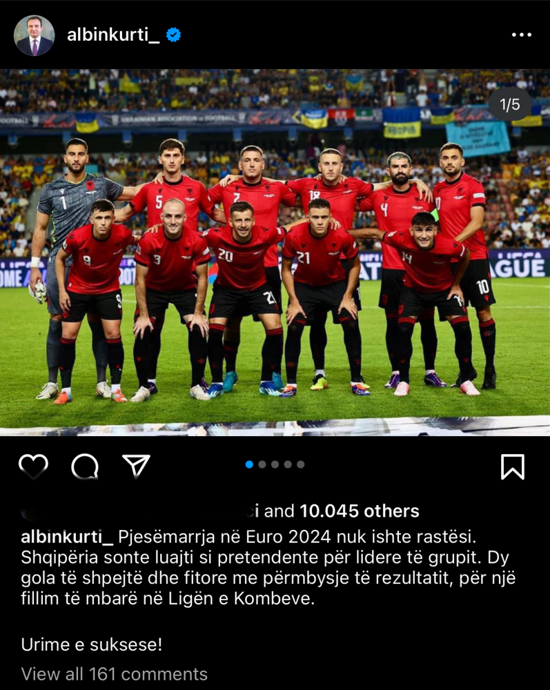 Përmes një postimi në Instagram, Kurti ka thënë se Shqipëria luajti si pretendente për liderë te grupit e se pjesëmarrja e saj në Euro 2024 nuk ishte rastësi.