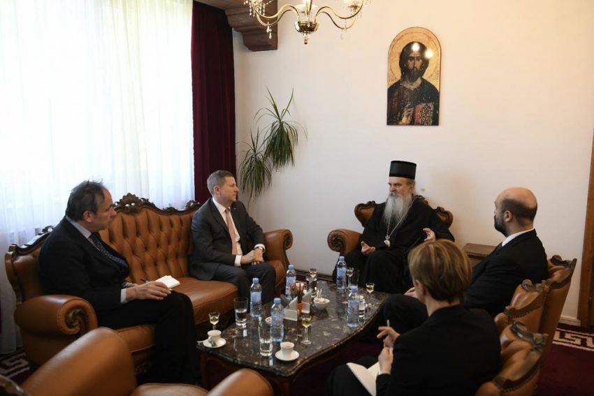 Ambasadori i BE-së takon peshkopin Teodosije, flasin për zbatimin e vendimit të Manastirit të Deçanit
