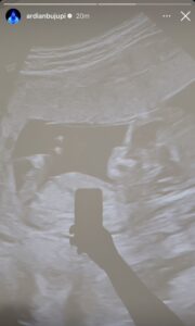 Në fotografinë e publikuar, Ardiani shfaqet pranë bashkëshortes së tij, Fjolla Fetinci, ndërsa në sfond shihet ekoja e foshnjës, një detaj që i jep imazhit një ndjesi shumë emocionale.