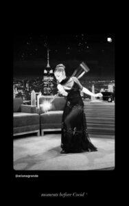 Ariana e zbuloi diagnozën në Instagram, duke ndarë një foto nga paraqitja e saj në The Tonight Show me mbishkrimin “momente para Covid”.