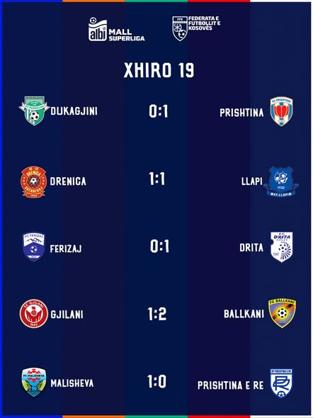 Ka përfunduar xhiroja e 19-të në Albi Mall Superligën e Kosovës në futboll,ku të dielën janë zhvilluar edhe dy takime që sollën rezultate të pritura.
