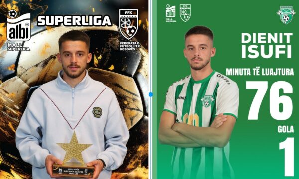 “Për vlerësimin si më i miri i javës, falënderoj familjen time, bashkëlojtarët dhe gjithë stafin e KF Dukagjinit, sepse pa ta performanca ime individuale do të ishte e pamundur”, tha Isufi për faqen zyrtare të FFK-së.