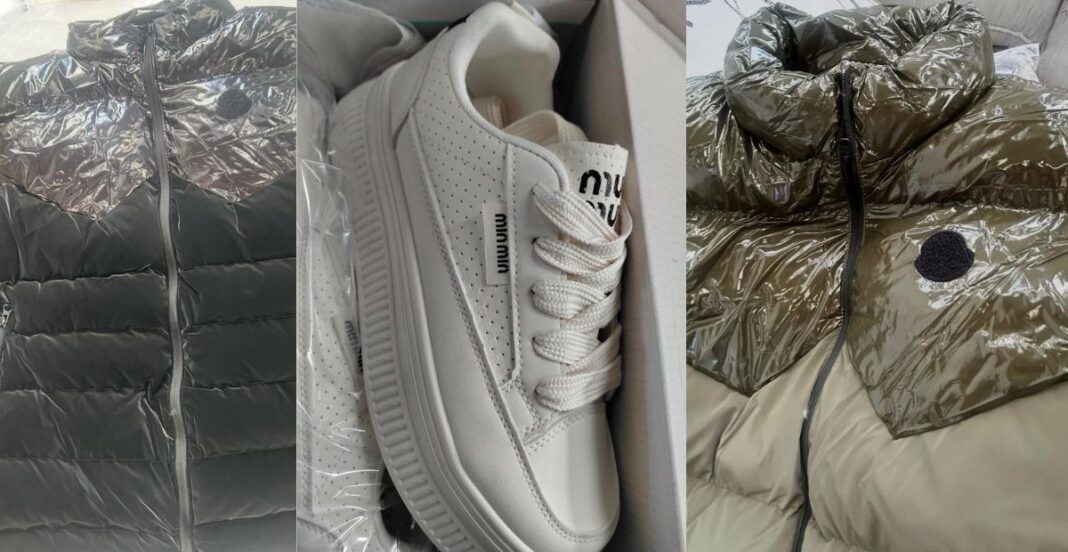 Këto mallra mbanin logot e falsifikuara të markave të njohura ndërkombëtare si Moncler, Adidas, Nike, Calvin Klein dhe Stone Island.
