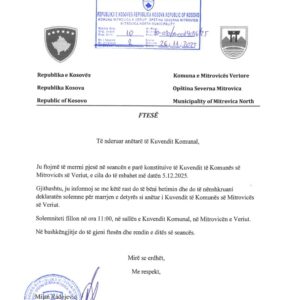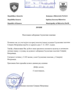 Lista Serbe është tërhequr pas ftesës për seancën konstituive të Mitrovicës së Veriut, pasi dokumenti fillestar nuk përmbante shënimin zyrtar “Republika e Kosovës”.