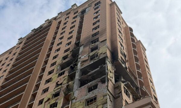 Footage circulating online shows a strike on a multi-story building.