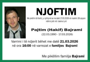 Familjarët kanë njoftuar se Pajtim Bajrami do të varroset në ora 16:00 në varrezat e familjes Bajrami.