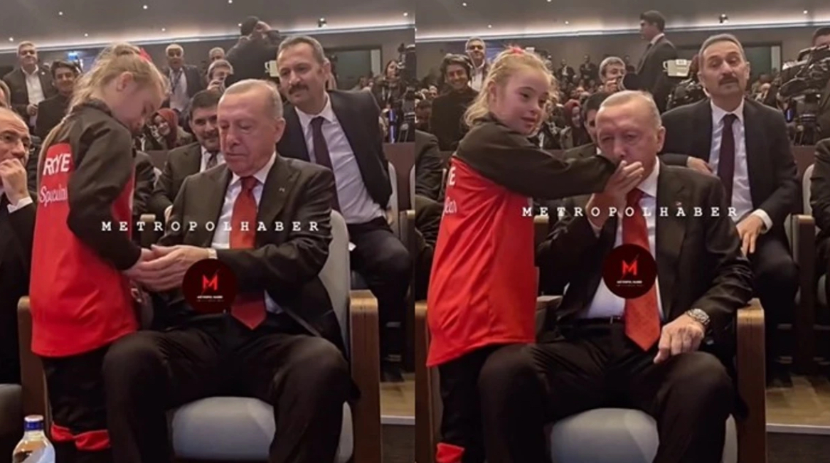 Presidenti turk, Recep Tayyip Erdogan është filmuar duke i dhuruar para në dorë një vajze me sindromën down.
