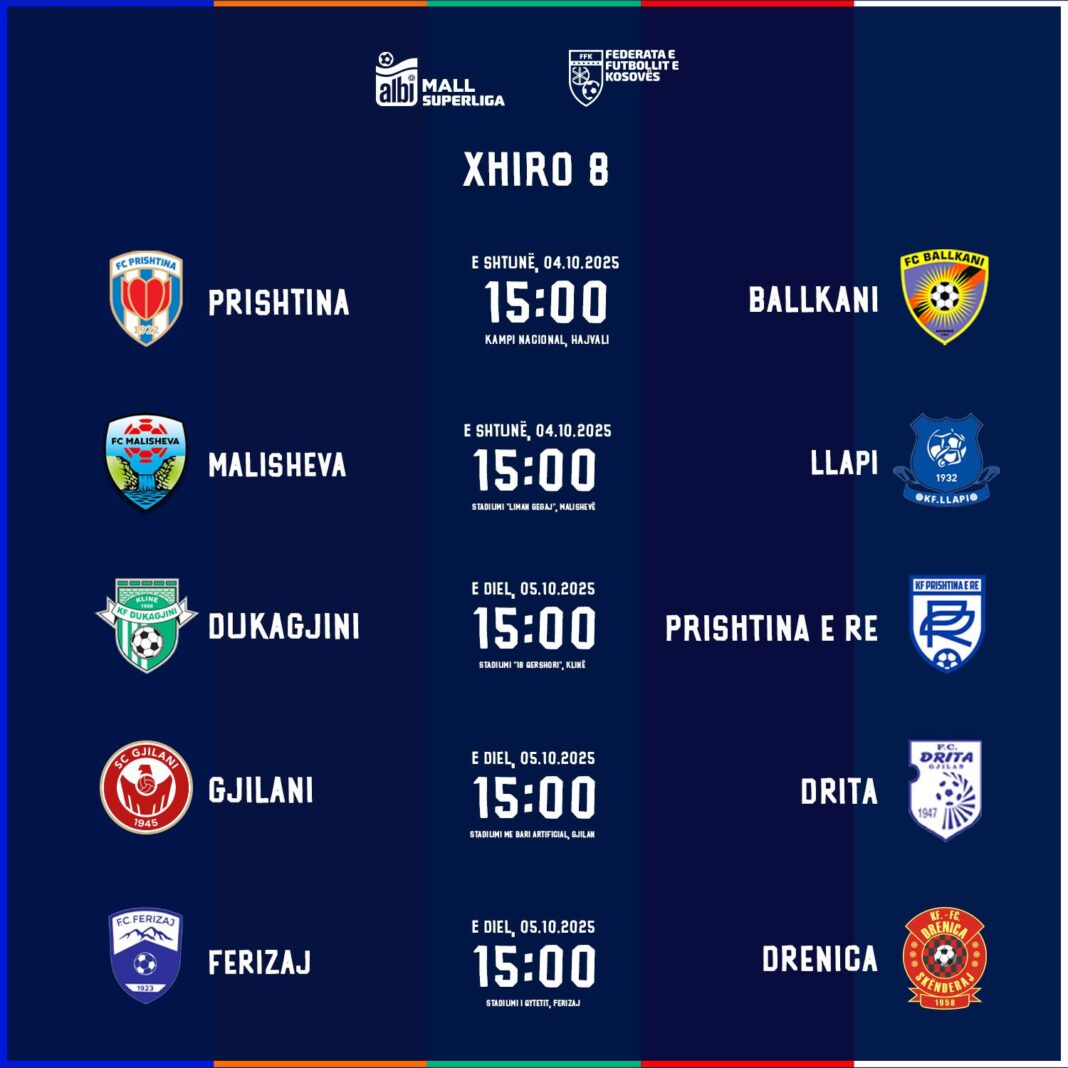 Federata e Futbollit të Kosovës ka publikuar orarin e xhiros së tetë, e cila këtë javë do të zhvillohet të shtunën dhe të dielën nga ora 15:00