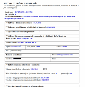 Fillimisht, vlera e parashikuar e kontratës ishte 105,000 euro, por pas përfundimit të procedurave të prokurimit, kontrata u nënshkrua për shumën 103,910 euro.