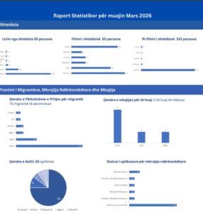 Për muajin mars 2026, Ministria e Punëve të Brendshme e Kosovës ka publikuar raportin statistikor lidhur me shtetësinë, migracionin dhe mbrojtjen ndërkombëtare, duke dhënë një pasqyrë të zhvillimeve kryesore në këtë fushë. Sipas të dhënave, në Qendrën e Përkohshme të Pritjes për migrantë kanë qenë të akomoduar 75 persona, ndërsa në Qendrën e Mbajtjes për të Huaj janë ndaluar 5 persona. Ndërkohë, në Qendrën e Azilit janë regjistruar gjithsej 20 aplikime për mbrojtje ndërkombëtare.