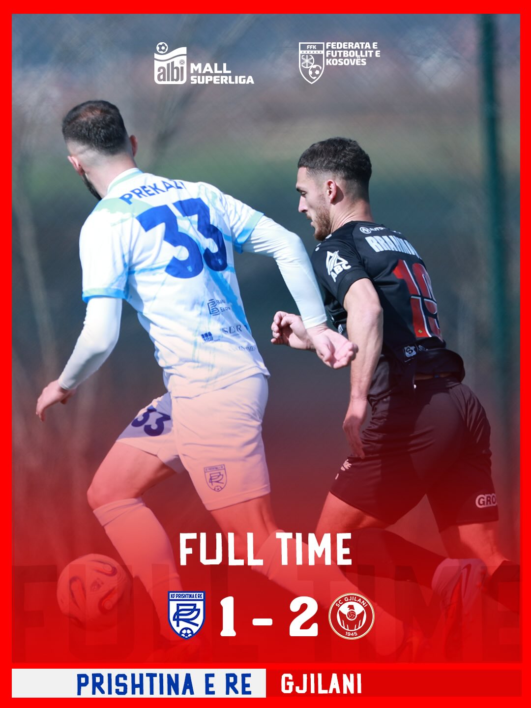 Në minutat e fundit, Gjilani fitoi një penallti pas një ndërhyrjeje të ashpër në zonë, të cilën Senad Jarovic e shfrytëzoi për të vulosur fitoren 1-2.