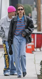 Hailey Bieber ka qenë një ndër mbështetëset më të mëdha të këtij trendi. Ajo është parë shpesh me xhemperë me vija me ngjyra, duke i kombinuar ato me xhinse të gjera dhe atlete të bardha për një pamje të relaksuar dhe moderne. Ky stil i saj është një frymëzim i shkëlqyer për ata që duan të jenë në hap me modën.