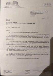 Sipas njoftimit zyrtar të Gjykata Evropiane për të Drejtat e Njeriut, padia është regjistruar më 14 nëntor 2025, ndërsa Gjykata ka pranuar edhe korrespondencën shtesë të datës 11 dhjetor 2025.