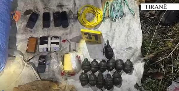 Gjatë kontrolleve, policia njoftoi se “u gjetën në këtë banesë: 3 kallëpe tritol; 12 granata dore sulmuese; sasi lëndësh plasëse gati për shpërthim, të montuara me kapsolla detonatore, fitil zjarrpërcjellës dhe celularë (mina); 3 ndezës granatash, kapsolla detonatore dhe 5 celularë; 4 armë zjarri (2 automatikë dhe 2 pushkë), 8 krehra dhe pjesë armësh; 6000 fishekë të kalibrave të ndryshëm; 2 kg e 25 gramë kanabis”.