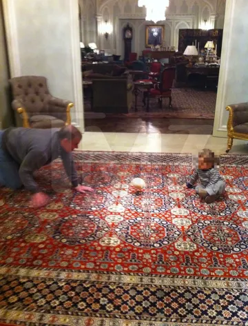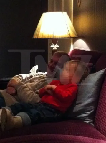 Në disa imazhe ai shihet të ulur edhe në një divan me fëmijën afër tij.
