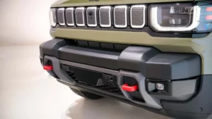 Parakolpi i përparmë, i cili ka dy grepa të kuqe për rikuperim, del nga jashtë për të mbrojtur sipërfaqen e mbushur me LED dhe pjesët pas fashës së përparme.