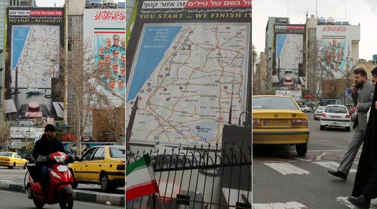 Një billboard në Sheshin Palestinë në qendër të Teheranit thuhet se vinte me kërcënime me sulme hakmarrëse me raketa balistike ndaj Izraelit nëse IDF ose ushtria amerikane sulmojnë Iranin.