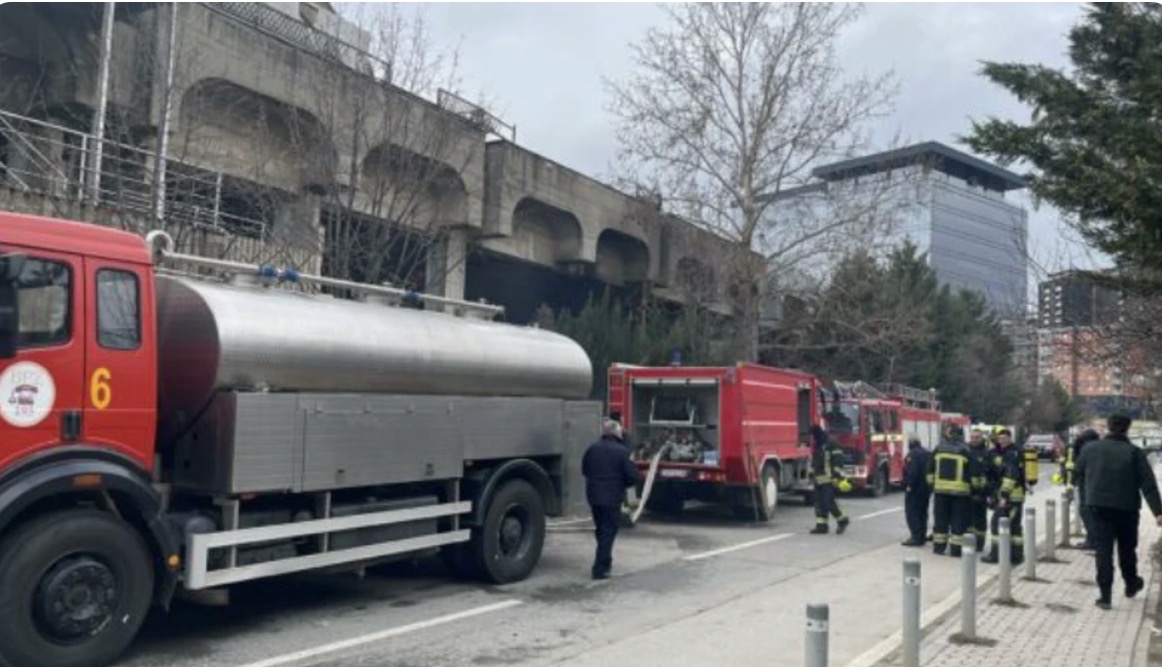 Një zjarr ka kapluar podrumin e ish-objektit të Rilindjes, derisa në vendin e ngjarjes janë edhe zjarrfikësit.