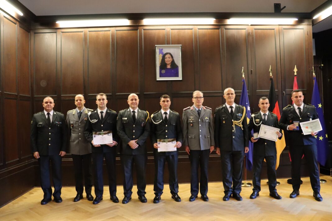 Sot, në ambasadën e Kosovës në Berlin, u mbajt ceremonia e përfundimit të akademisë ushtarake trevjeçare në Republikën Federale të Gjermanisë të katër kadetëve të FSK-së.