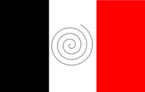 Një trengjyrëshe vertikale e zezë, e bardhë dhe e kuqe me një simbol spirale në qendër të shiritit të bardhë, i cili është një simbol dardan për diellin rrotullues.
