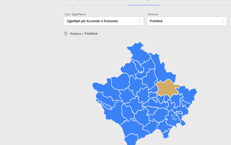 Në këtë platformë mund të gjendet edhe rezultatet për kryetarë të komunave; dhe, rezultatet e subjekteve politike për Kuvendet Komunale./ATVLIVE/
