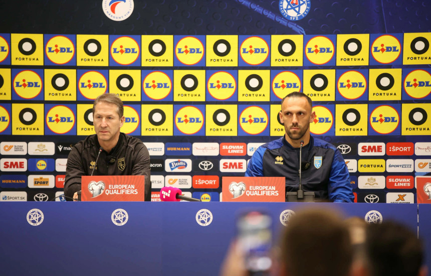 Përzgjedhësi i Kombëtares së Kosovës Franco Foda dhe sulmuesi Vedat Muriqi kanë mbajtur mbajtur konferencë për shtyp përpara ndeshjes së nesërme kundër Sllovakisë në Bratisllavë,e vlefshme për play-off-in e Kupës së Botës 2026.