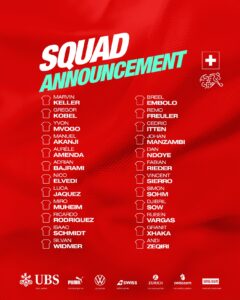 Kombëtarja e Zvicrës ka bërë publike listën e futbollistëve të grumbulluar për dy ndeshjet e rëndësishme kualifikuese të muajit tetor, që luhet në kuadër të kualifikimeve për Kampionatin Botëror 2026.