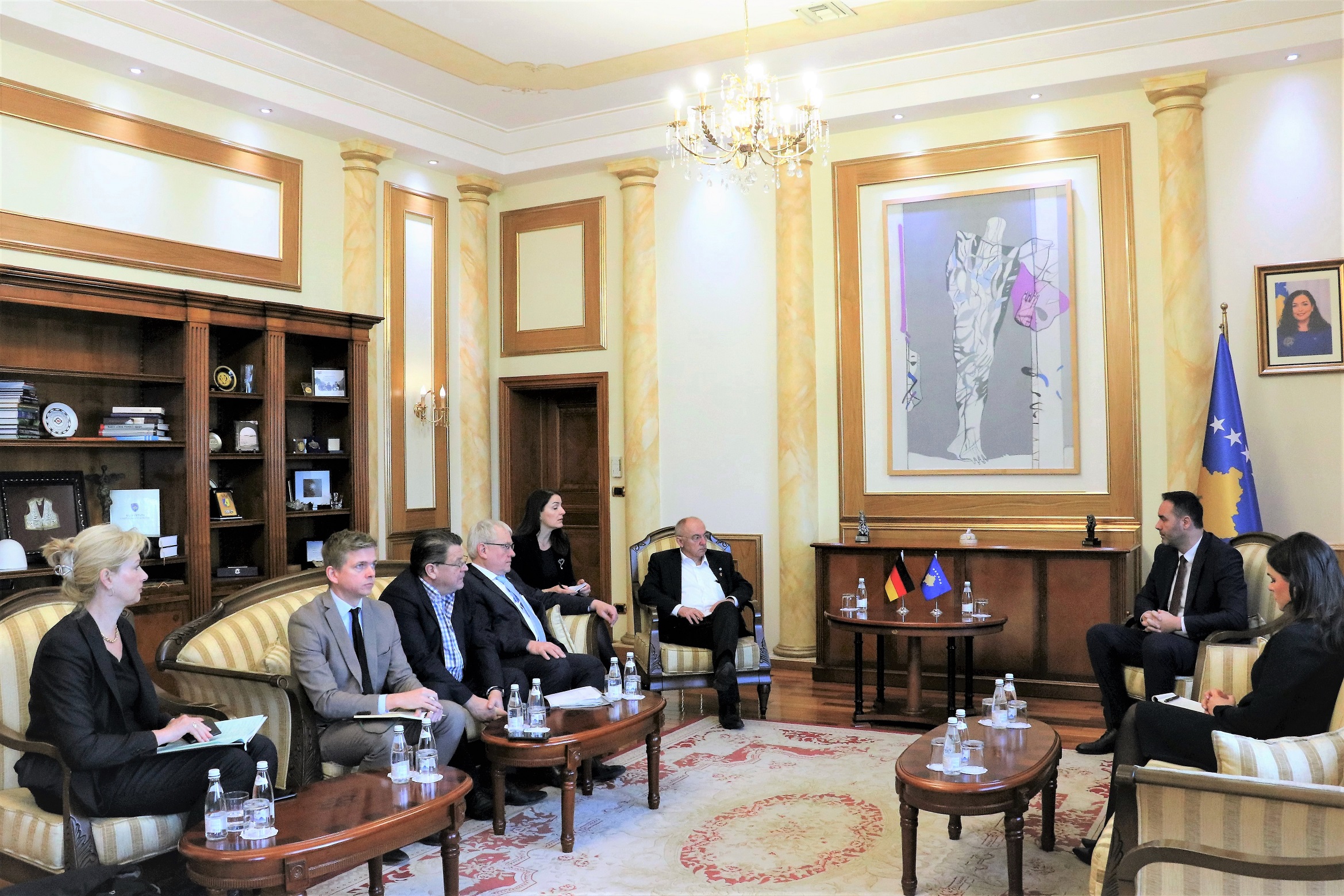 “Kreu i Kuvendit e njoftoi delegacionin parlamentar gjerman me proceset nëpër të cilat po kalon vendi dhe punën e institucioneve të Kosovës për përmbushjen e detyrave që dalin para tyre në këto procese, me theks të veçantë, në rrugëtimin për t’u bërë pjesë e strukturave euro-atlantike.Kryetari Konjufca vlerësoi se Gjermania ishte në krah të Kosovës dhe qytetarëve të saj në çdo fazë të shtetndërtimit e të zhvillimit dhe potencoi rëndësinë e kësaj përkrahjeje në sfidat dhe objektivat që vendi ynë ka para vetes, në aspektin e brendshëm, ashtu edhe në rrafshin ndërkombëtar”, thuhet në komunikatë.