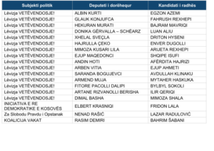 “Bazuar në kërkesën e presidentes së Republikës së Kosovës, znj. Vjosa Osmani të dorëzuar më 12 shkurt 2026, për të rekomanduar kandidatët e ligjshëm të radhës, për arsye se kanë dhënë dorëheqje nga pozita e deputetit të Kuvendit të Republikës së Kosovës, Komisioni Qendror i Zgjedhjeve, duke vepruar në pajtim me nenin 112, paragrafin 4 të Ligjit për Zgjedhjet e Përgjithshme, rekomandon 18 kandidatët e radhës, të certifikuar në zgjedhjet e parakohshme për Kuvendin e Republikës së Kosovës, të cilat janë mbajtur më 28 dhjetor 2025, sipas tabelës vijuese:”