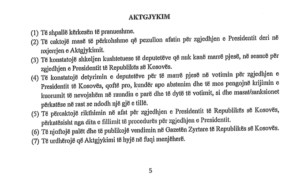 “ Të konstatojë detyrimin e deputetëve për të marrë pjesë në votimin për zgjedhjen e Presidentit të Kosovës, qoftë pro, kundër apo abstenim dhe të mos pengojnë krijimin e kuorumit të nevojshëm në raundin e parë dhe të dytë të votimit, si dhe masat/sanksionet përkatëse në rast se ndodh një gjë e tillë.”, thuhet në shkresë.