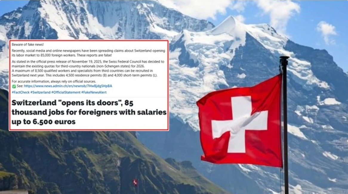 “Kujdes nga lajmet e rreme!”: Ambasada zvicerane reagon ndaj lajmit se “Zvicra ‘hap dyert’ për 85 mijë vende pune për të huajt”
