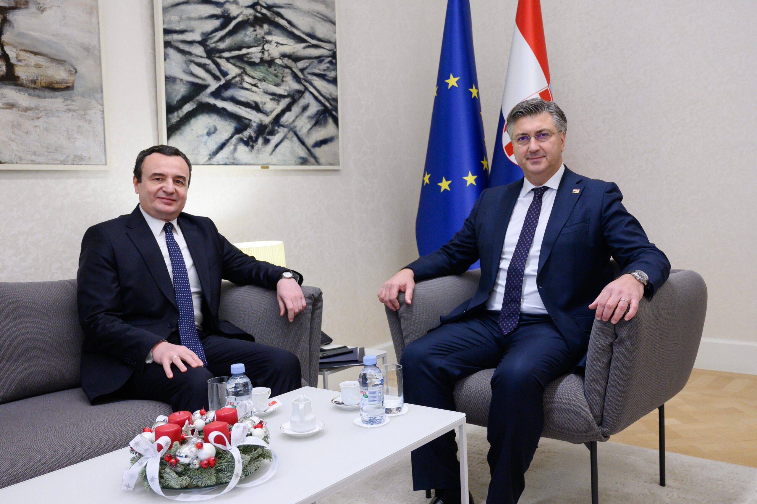 Kryeministri i Kosovës, Albin Kurti, gjatë vizitës së tij në Kroaci, është takuar me kryeministrin kroat, Andrej Plenkoviq, me të cilin ka zhvilluar takim dhe kanë mbajtur një konferencë të përbashkët, ku është folur për disa tema, raporton Gazeta Sinjali.