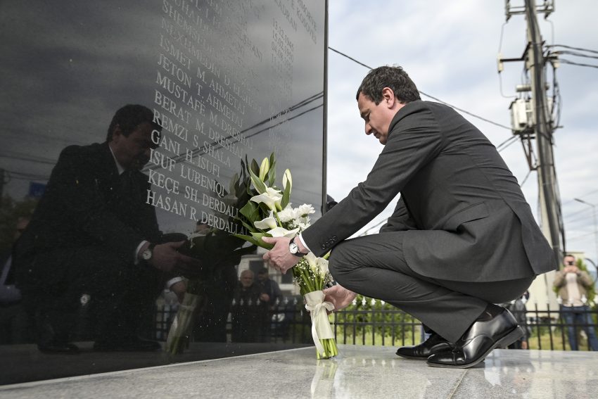 “Paraprakisht ishim edhe tek lapidari i martirëve ku para 25 vjetëve, sërish këtu, te popullsia civile e grumbulluar edhe nga fshatrat e tjera, forcat ushtarake policore, paramilitare serbe i kishin ndarë 18 burra, 16 shqiptarë dhe dy egjiptianë dhe i kanë pushkatuar ata. Kemi dëshmitarë të gjallë. Dëshmitari i gjallë është Naim Elshani, i cili edhe e ka identifikuar njërin prej atyre, mbi 30 ushtarëve, policëve e paramilitarë, që kanë vrarë e ekzekutuar, me inicialet E.B, por do të thotë që vetëm një është në arrest prej mbi 30 sosh. Kjo do të thotë se ka nisur drejtësia, por është shumë larg që ta mbyllë plagën duke i vendosur prapa grilave të gjithë ata, të cilët dhanë urdhër dhe ekzekutuan popullsinë civile e të paarmatosur:, ka thënë Kurti.