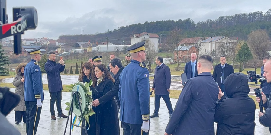 Presidentja Vjosa Osmani, kryetarja e Kuvendit, Albulena Haxhiu dhe kryeministri Albin Kurti kanë bërë homazhe në Prekaz në nder të Pavarësisë së Kosovës.