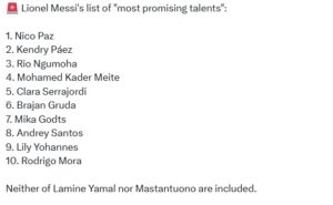 Në top-10 nuk është futur dyshja, Mastantuono dhe Lamine Yamal – ndoshta për Messin nuk llogaritën më si talentë.