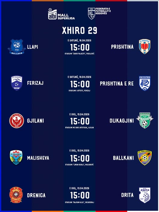 Kjo fundjavë pritet të sjellë xhiron e 29-të në Albi Mall Superligën e Kosovës,ku në program pritet të ketë ndeshje mjaft interesante për dashamirët e futbollit vendor.
