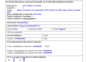 Mbi 1 milion euro për Botërorin 2026, Telekomi publikon kontratën milionëshe