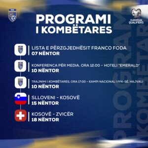 Sfida e parë e Dardanëve është 15 nëntori në ndeshjen kundër Sllovenisë dhe më 18 nëntor presin Zvicrën në stadiumin ‘Fadil Vokrri’ në Prishtinë. /ATVLIVE.TV