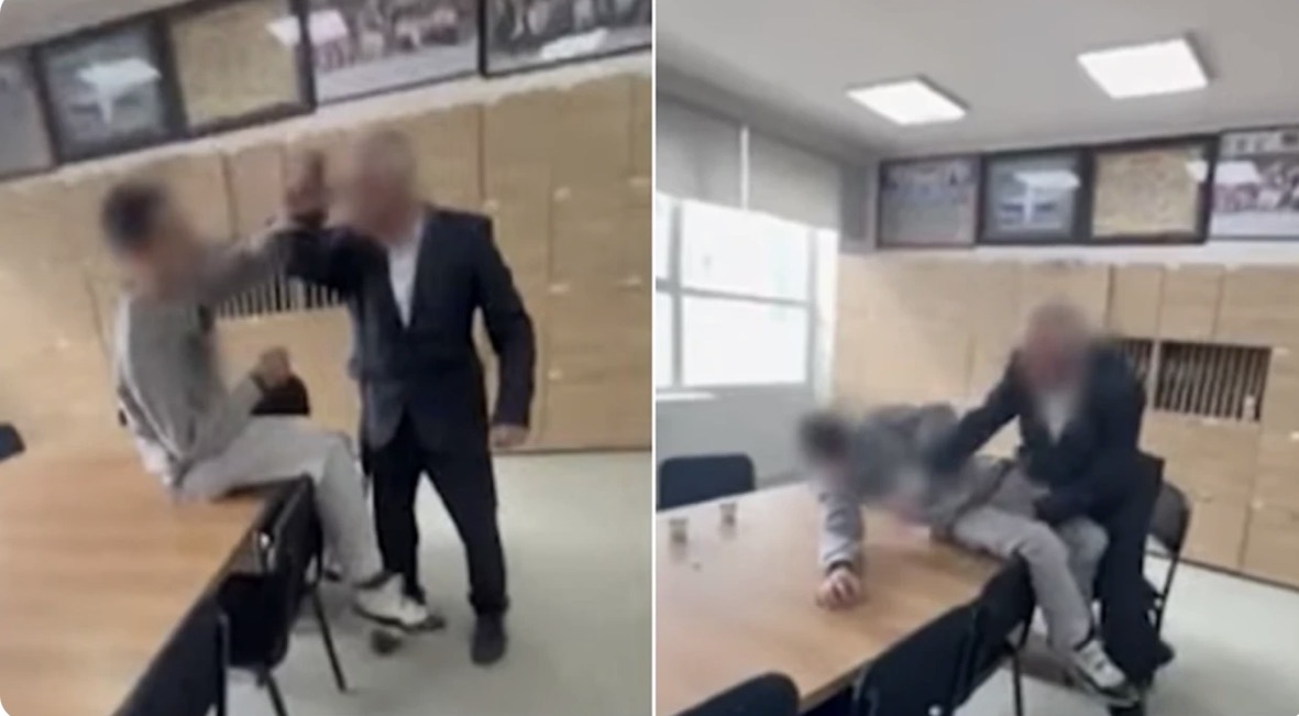 Në videon që e ka publikuar Kallxo, shihet një mësimdhënës i kësaj shkolle derisa e godet një nxënës.