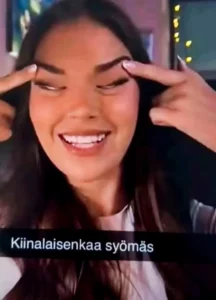 Në foton ku shfaqej kosovarja ishte vendosur përshkrimi “kiinalaisenkaa sýomäs”, që mund të përkthehet përafërsisht si “duke ngrënë me një kinez”.