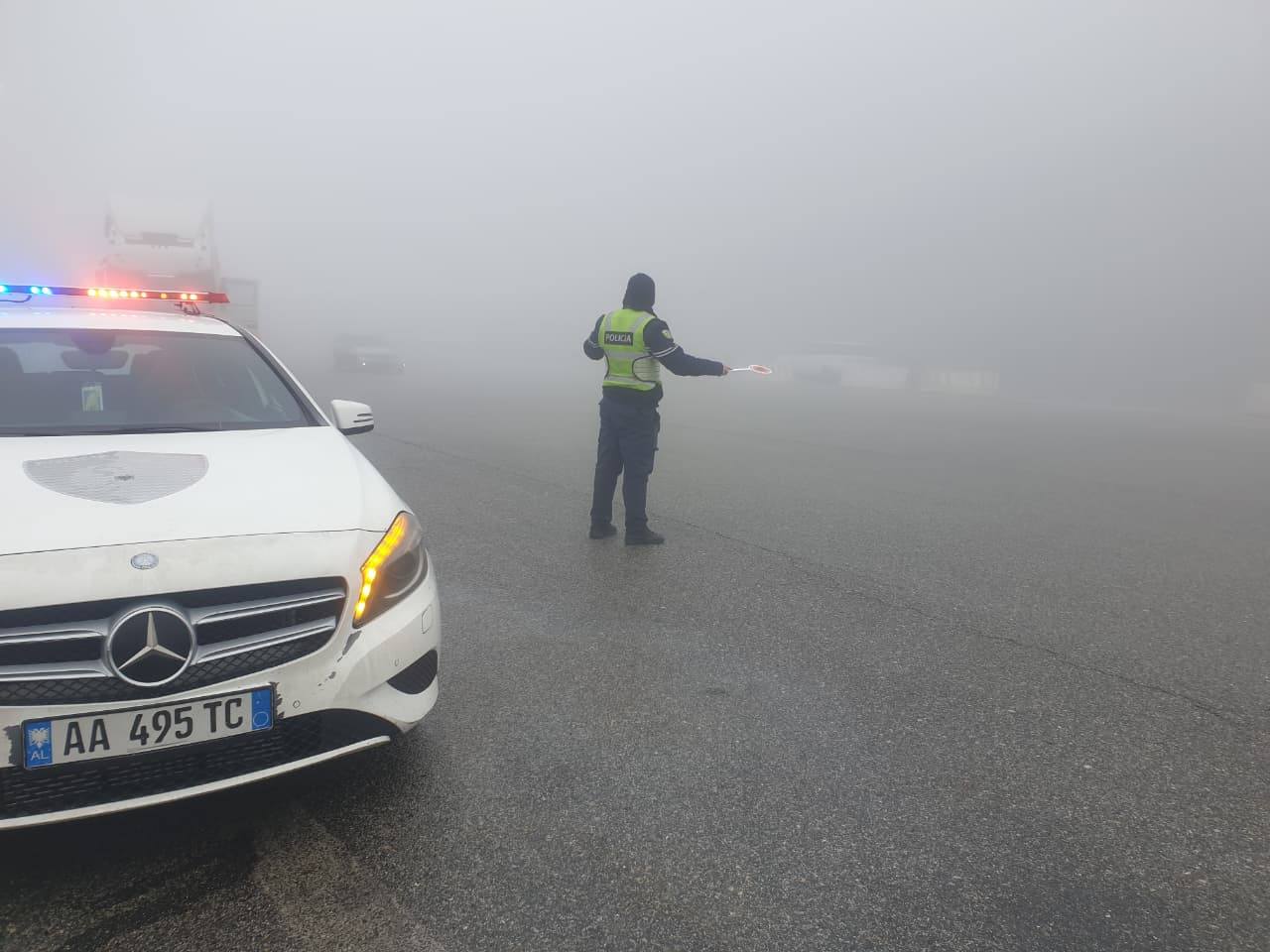Policia Shqiptare ka apeluar për rritje të kujdesit nga drejtuesit e automjeteve që qarkullojnë në Rrugën e Kombit, konkretisht në segmentin Tuneli i Kalimashit–Morinë, për shkak të prezencës së mjegullës dhe shikueshmërisë së reduktuar.
