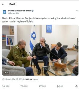 “Kryeministri Netanyahu jep urdhër për eliminimin e zyrtarëve të lartë iranianë”, thuhet në mbishkrimin e fotos së publikuar nga zyra e liderit izraelit.